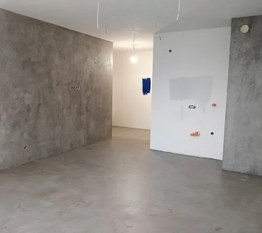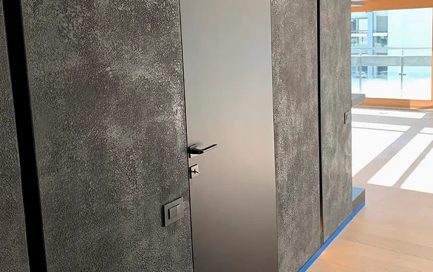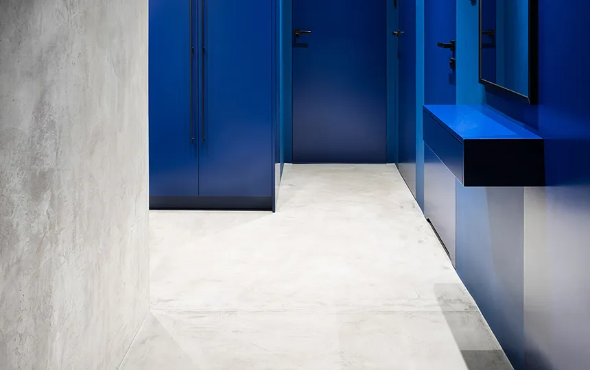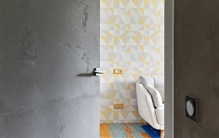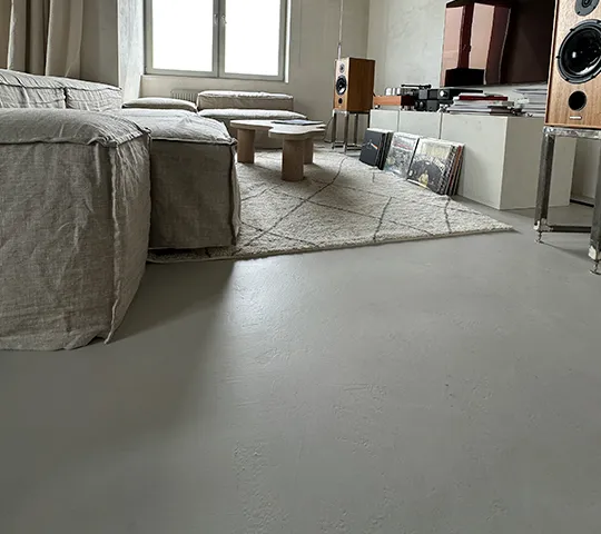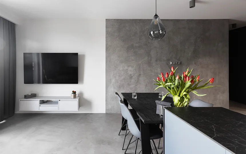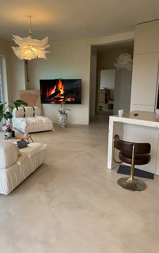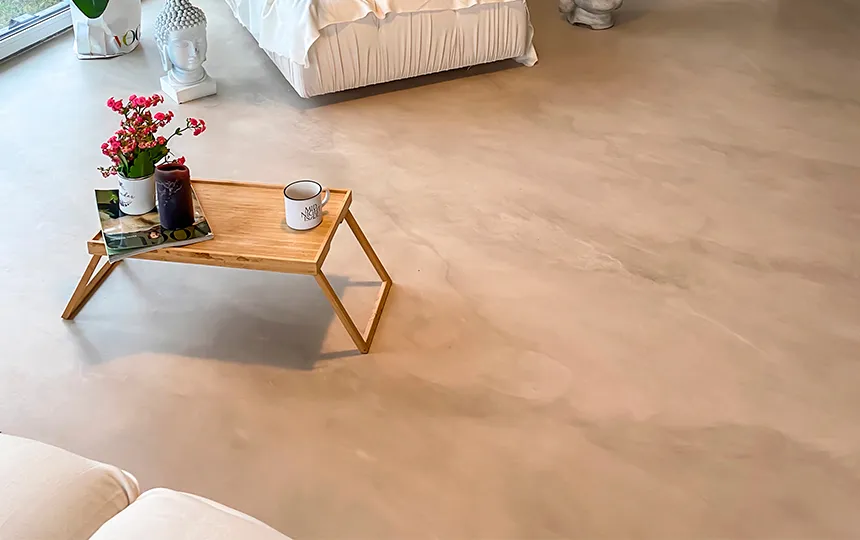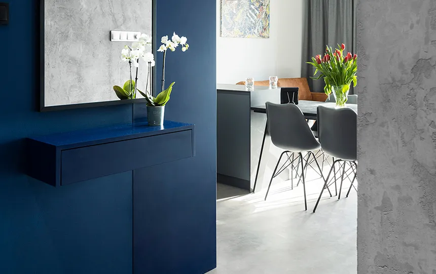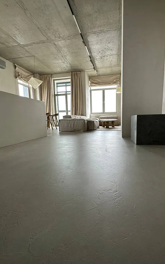 Gładka i jednolita powierzchnia z widoczną fakturą mikrocementu