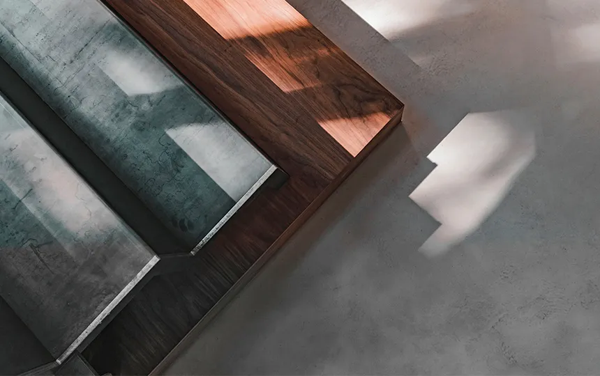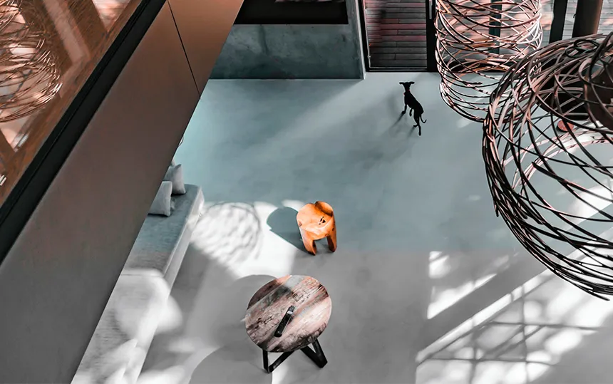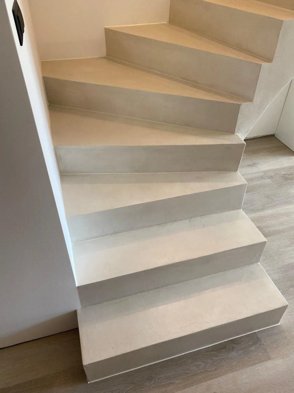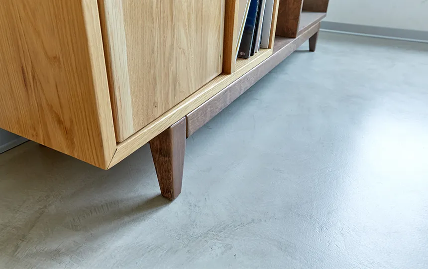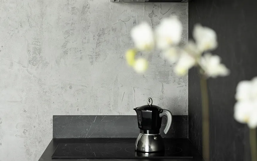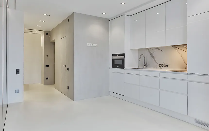 Gładka i jednolita powierzchnia z widoczną fakturą mikrocementu