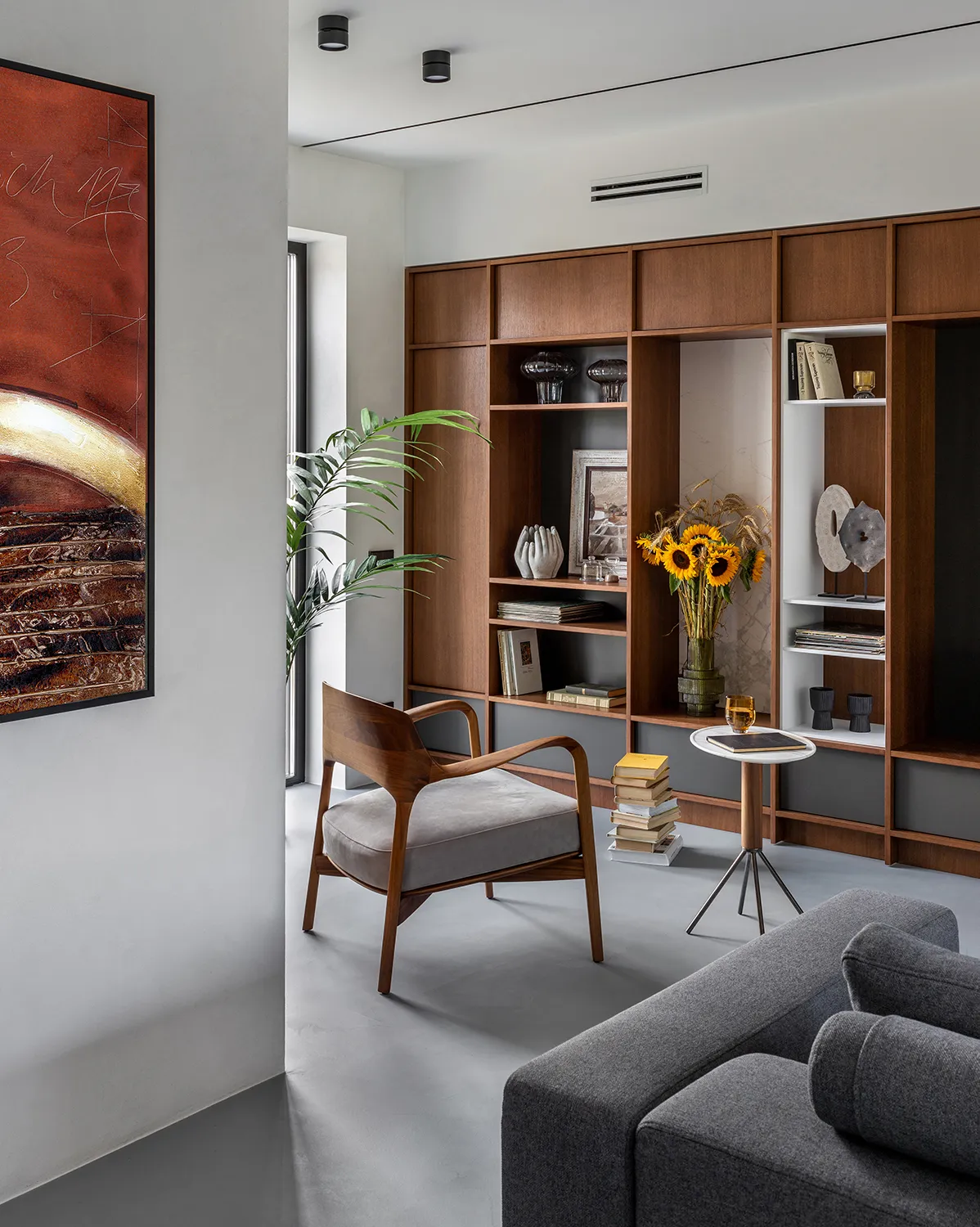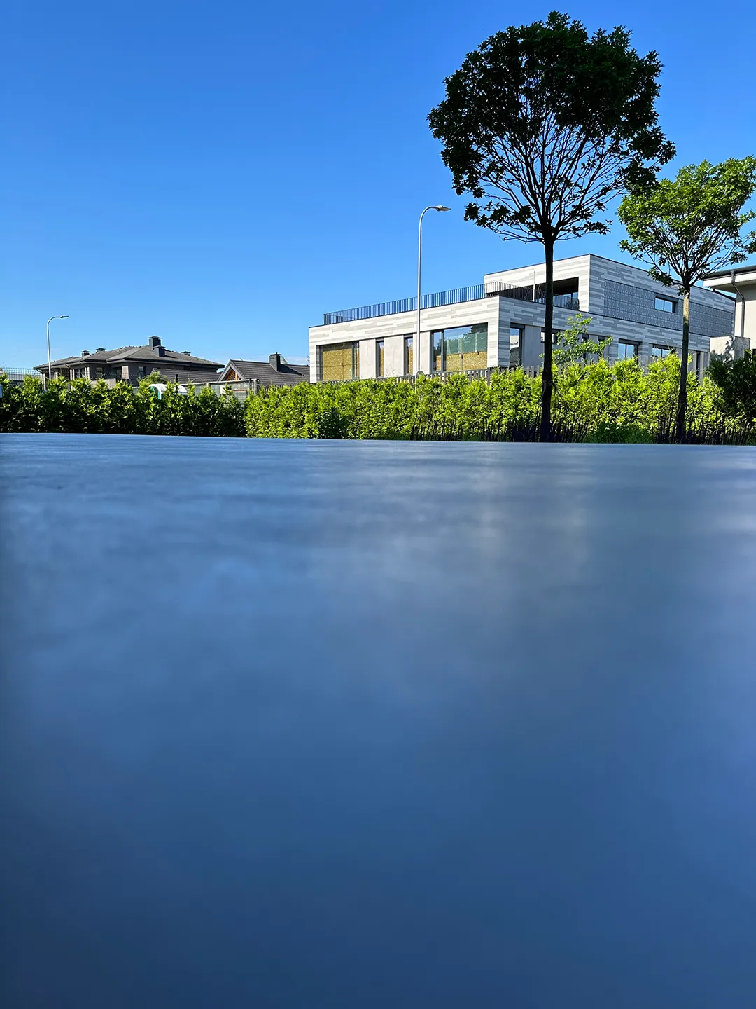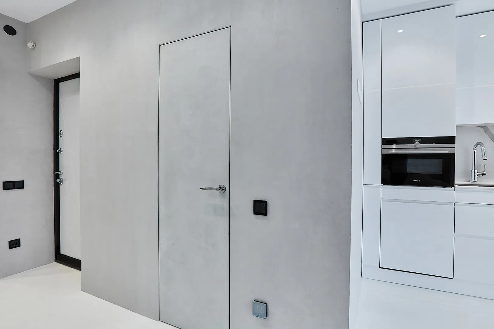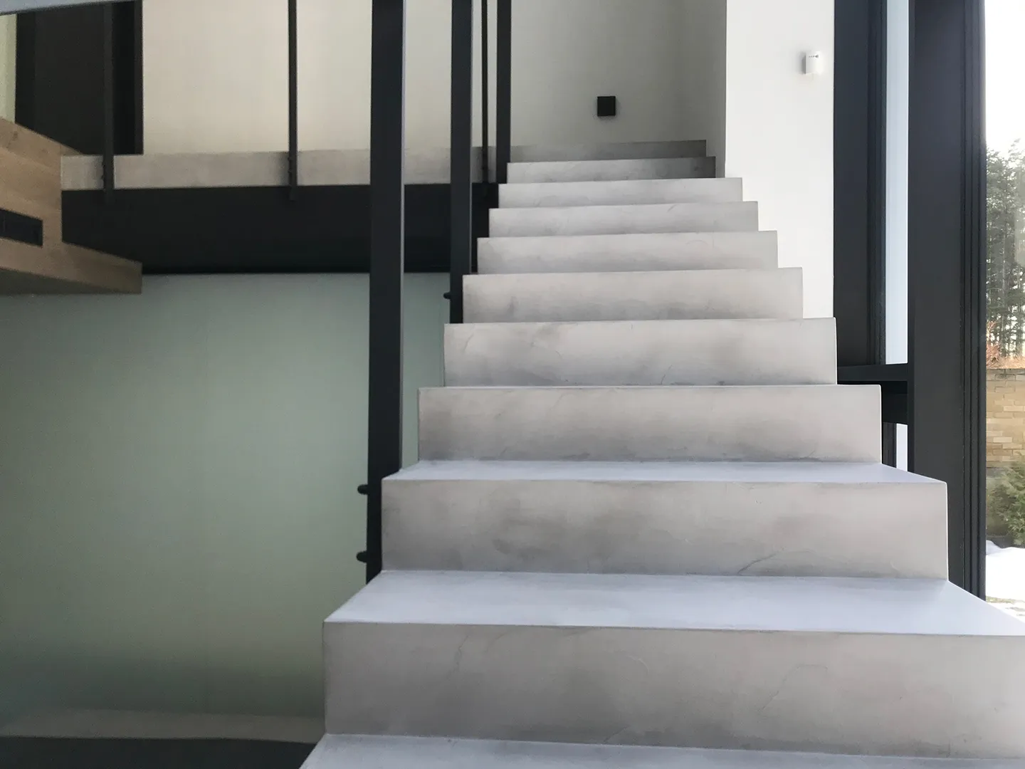 Gładka i jednolita powierzchnia z widoczną fakturą mikrocementu