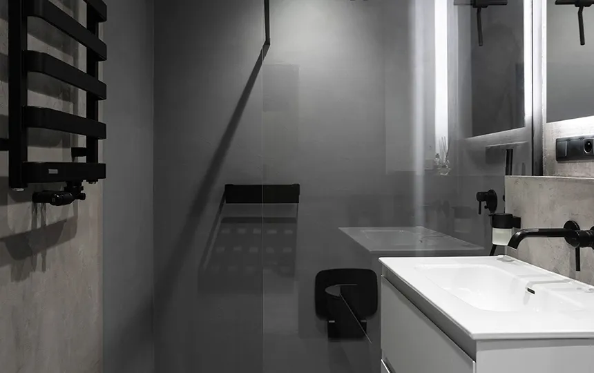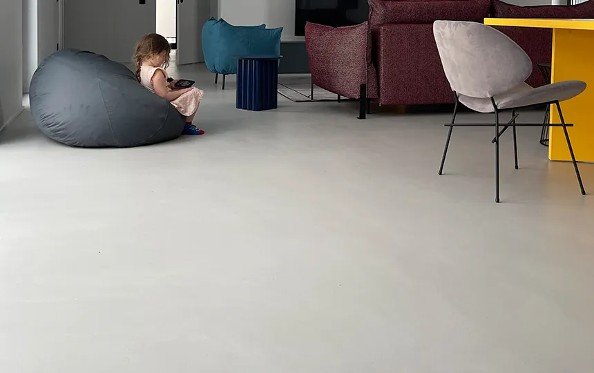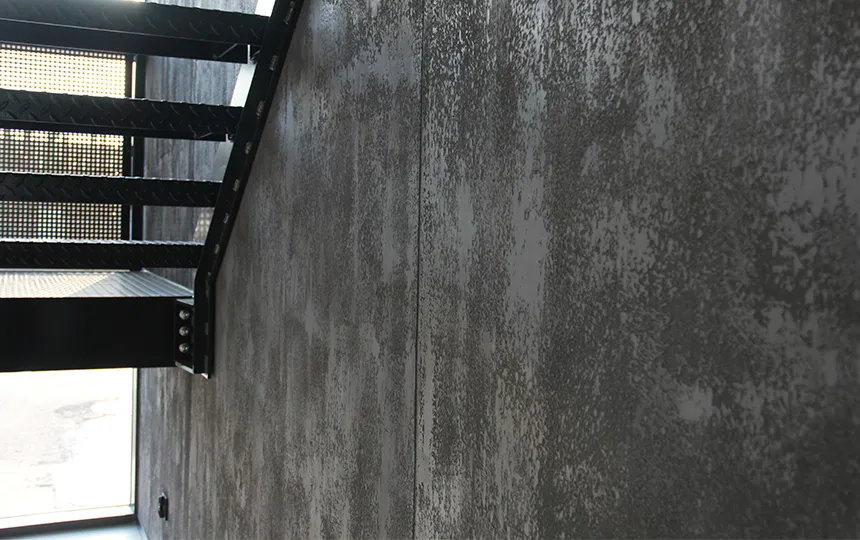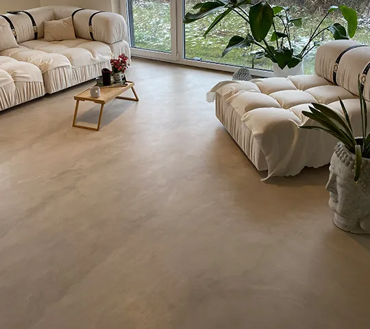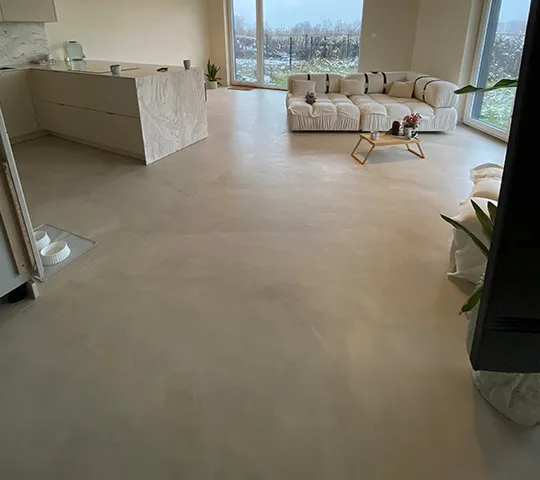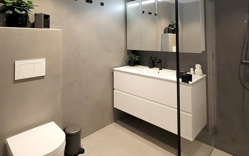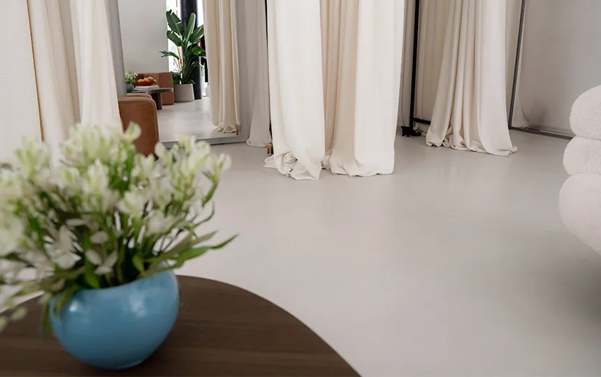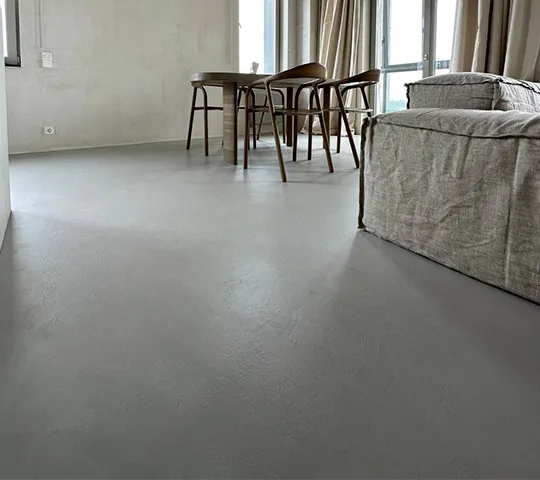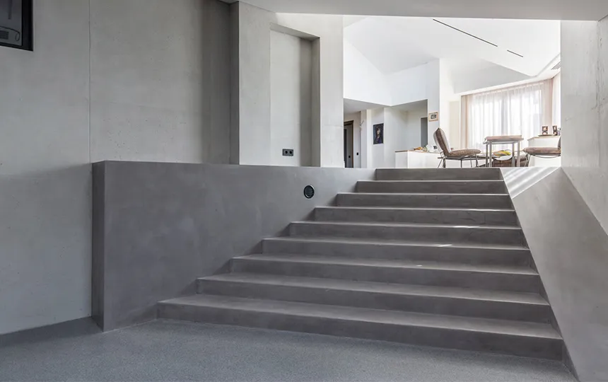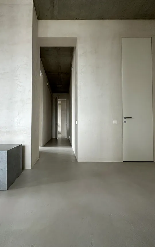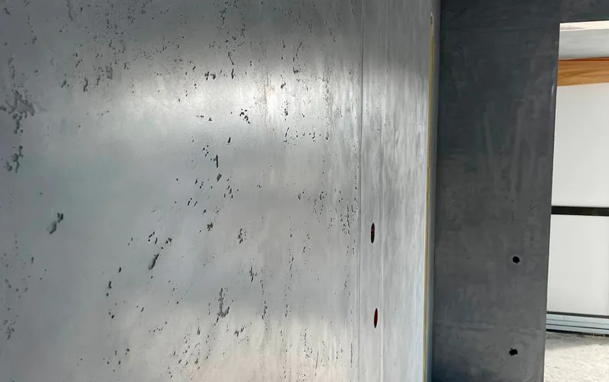 Gładka i jednolita powierzchnia z widoczną fakturą mikrocementu