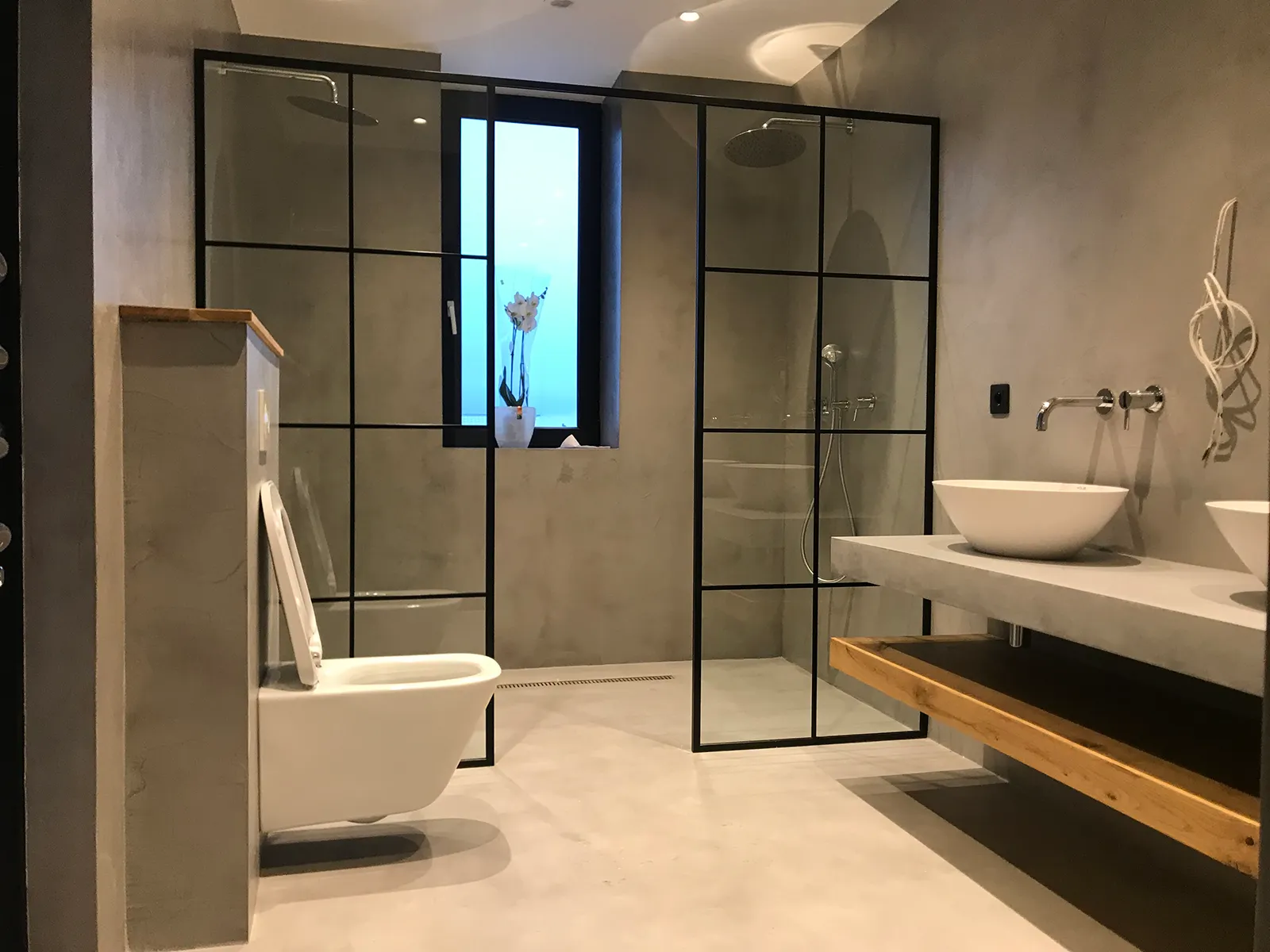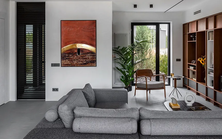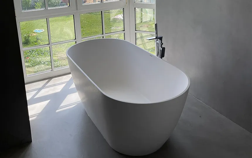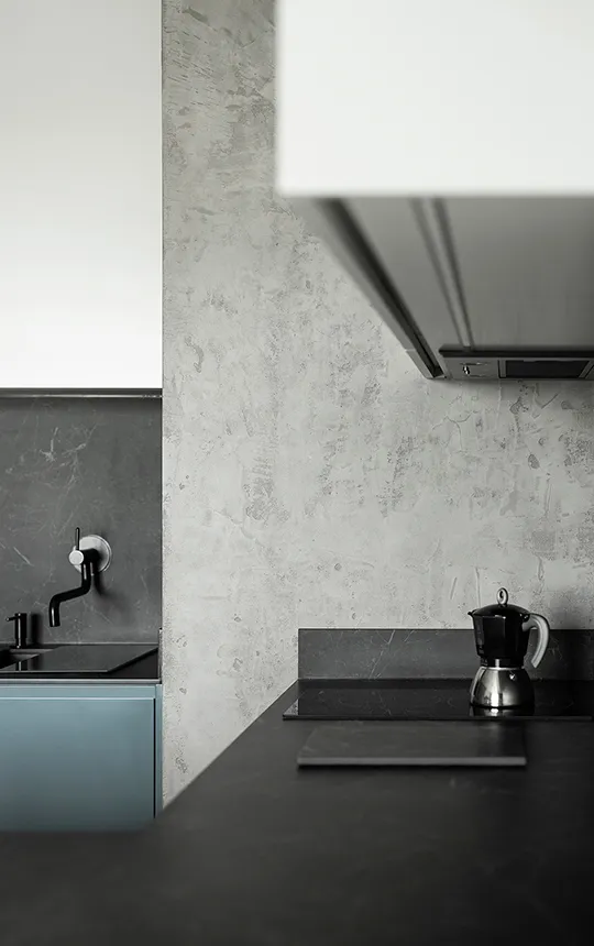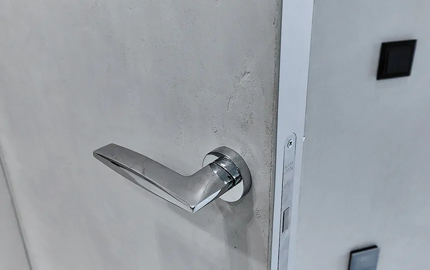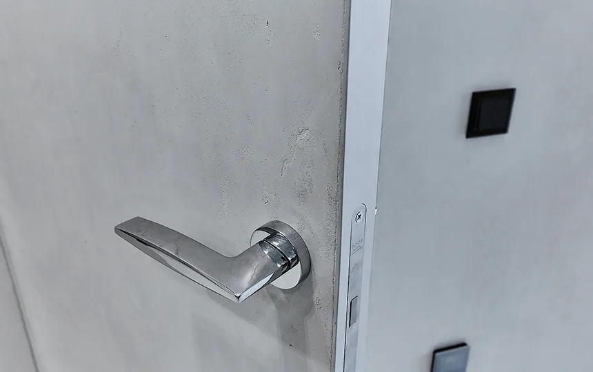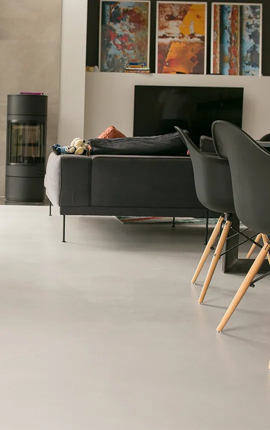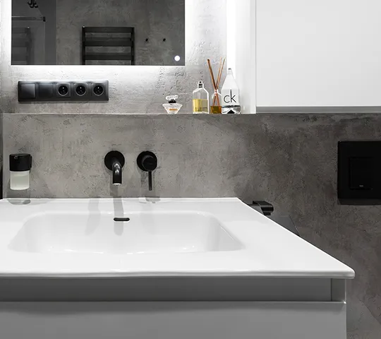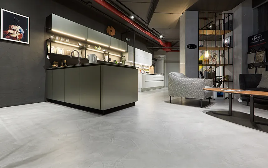 Gładka i jednolita powierzchnia z widoczną fakturą mikrocementu